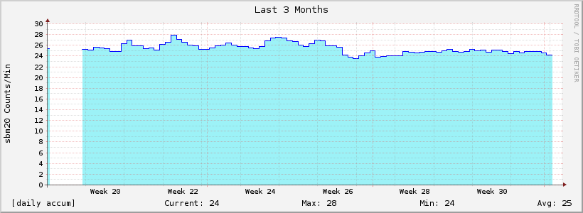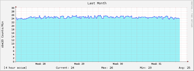 Using MightyOhm Geiger Counter, see Geiger Counter for details.